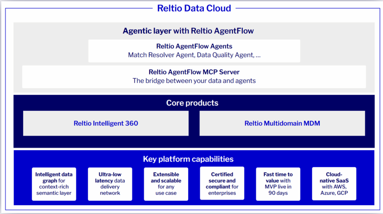 - Flexibility: Enterprises can use Reltio’s prebuilt agents, bring their own, or work with third-party agents. All gain secure access through the Reltio AgentFlow MCP Server.